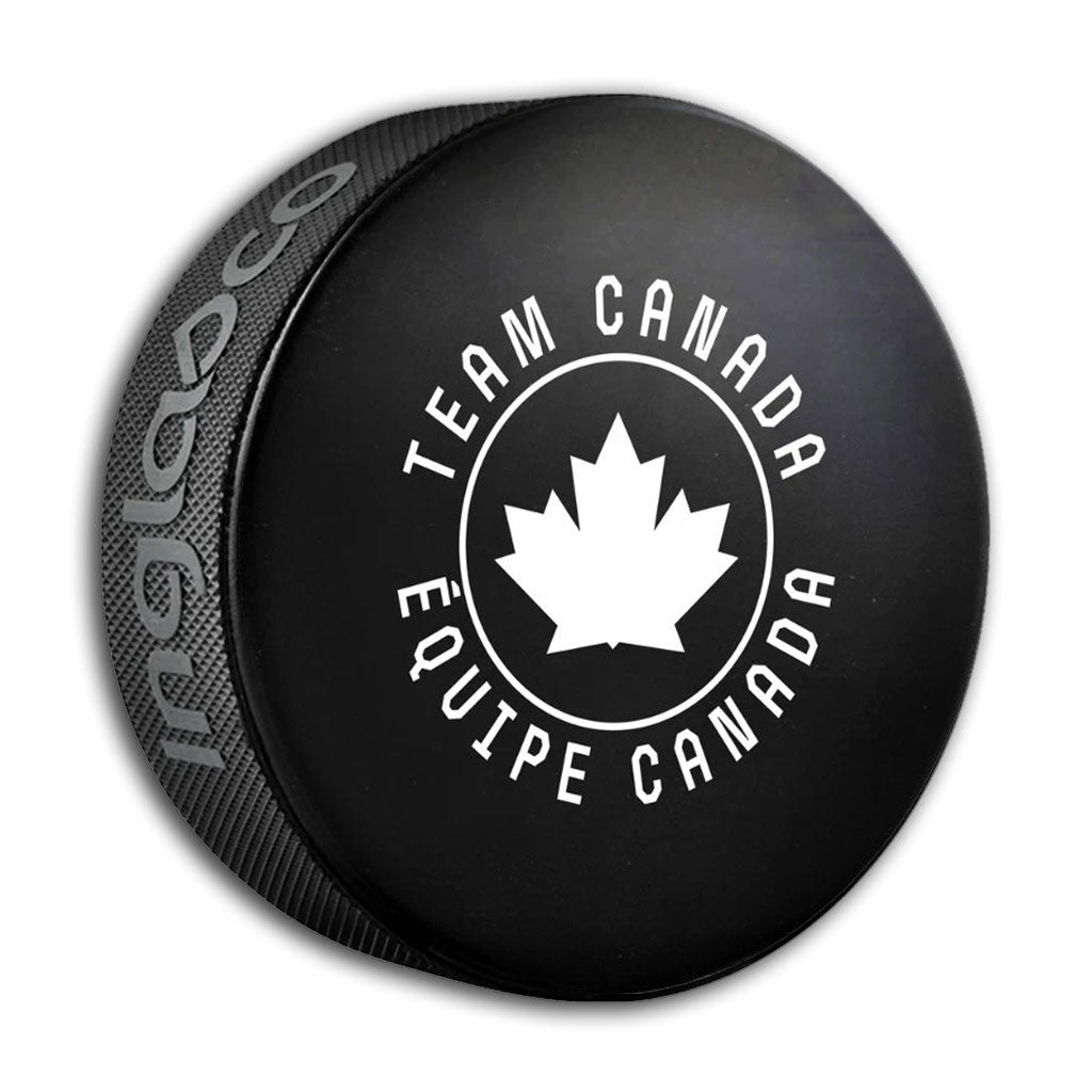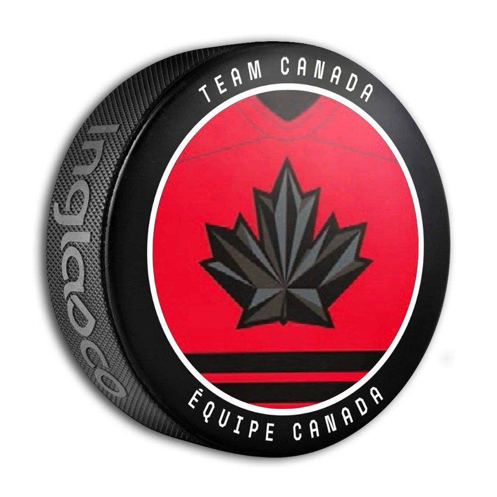 This is a 2026 Winter Olympic Games Milano Cortina Team Canada Away Jersey Souvenir Puck.This official licensed Hockey Canada puck is produced by InGlasco.
