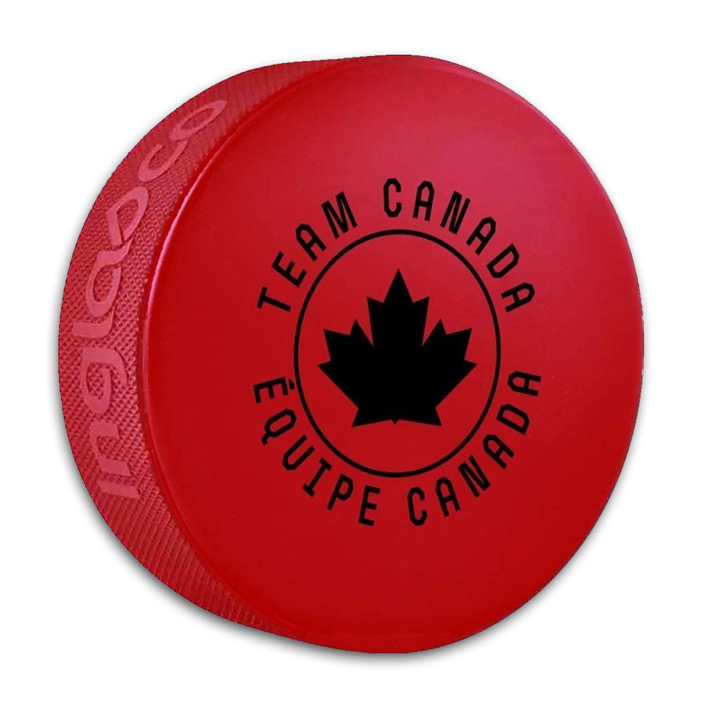 This official licensed Hockey Canada puck is produced by InGlasco.