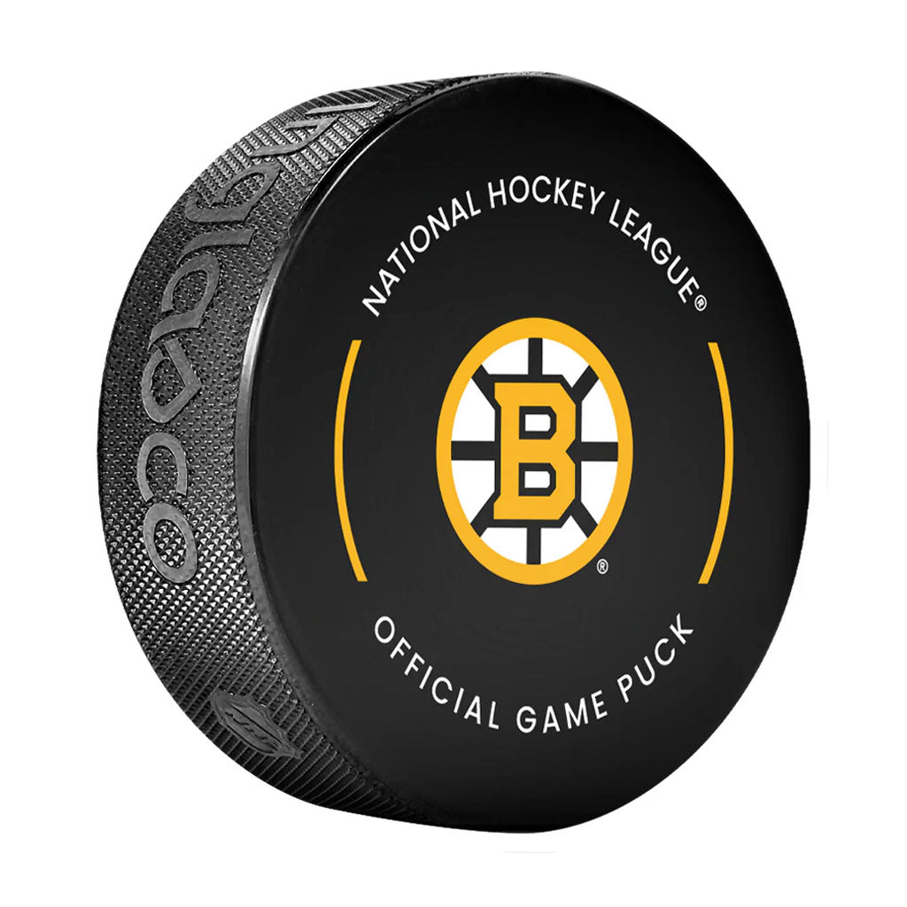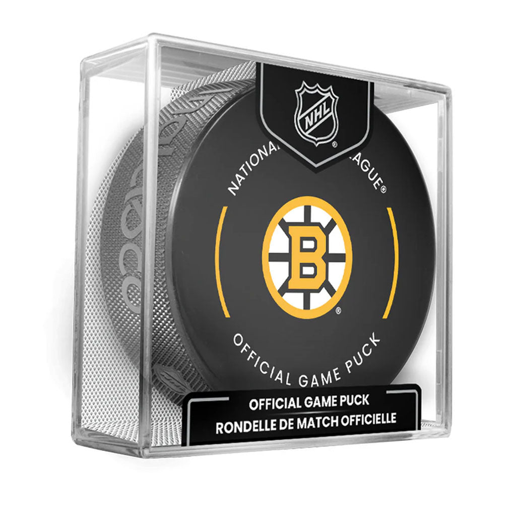 Boston Bruins 2025-26 NHL Official Game Model Puck In Display Case