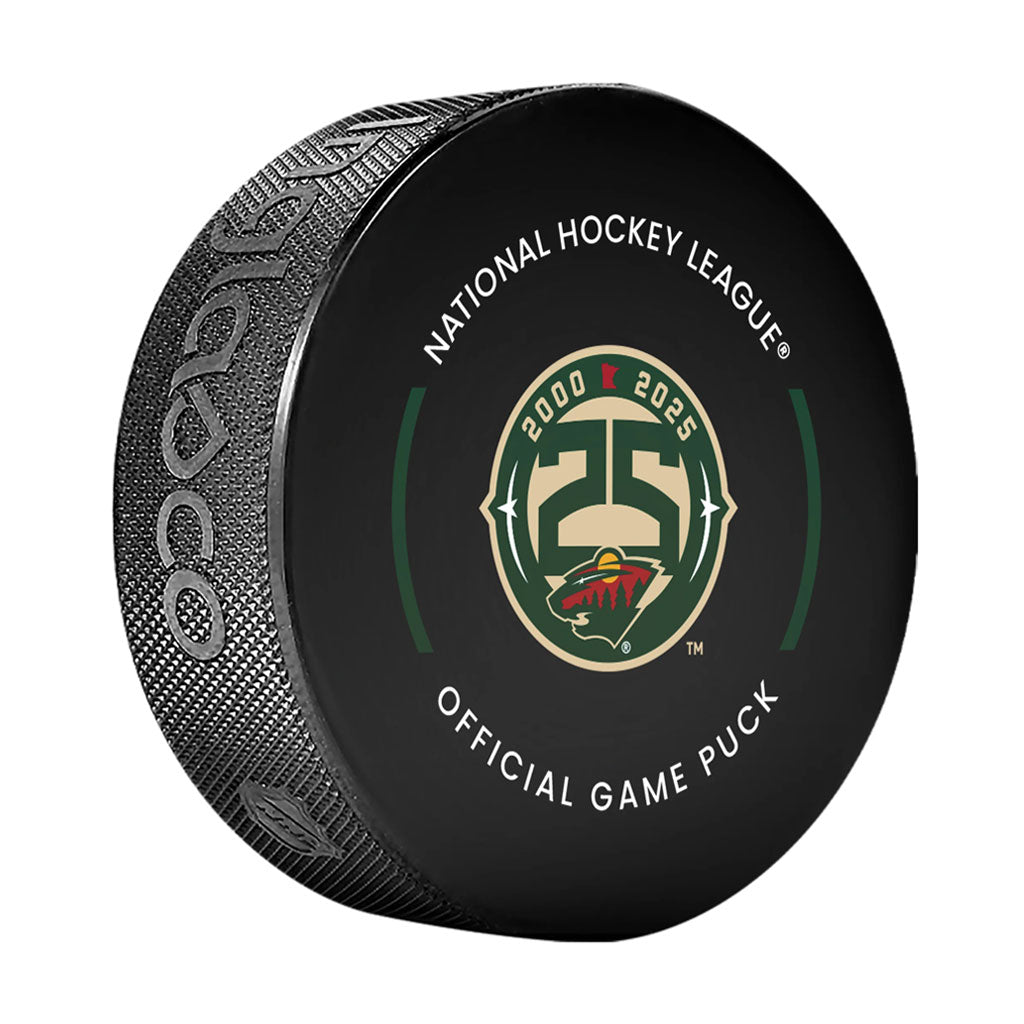 Minnesota Wild 25th Anniversary NHL Official Game Model Puck In Display Case